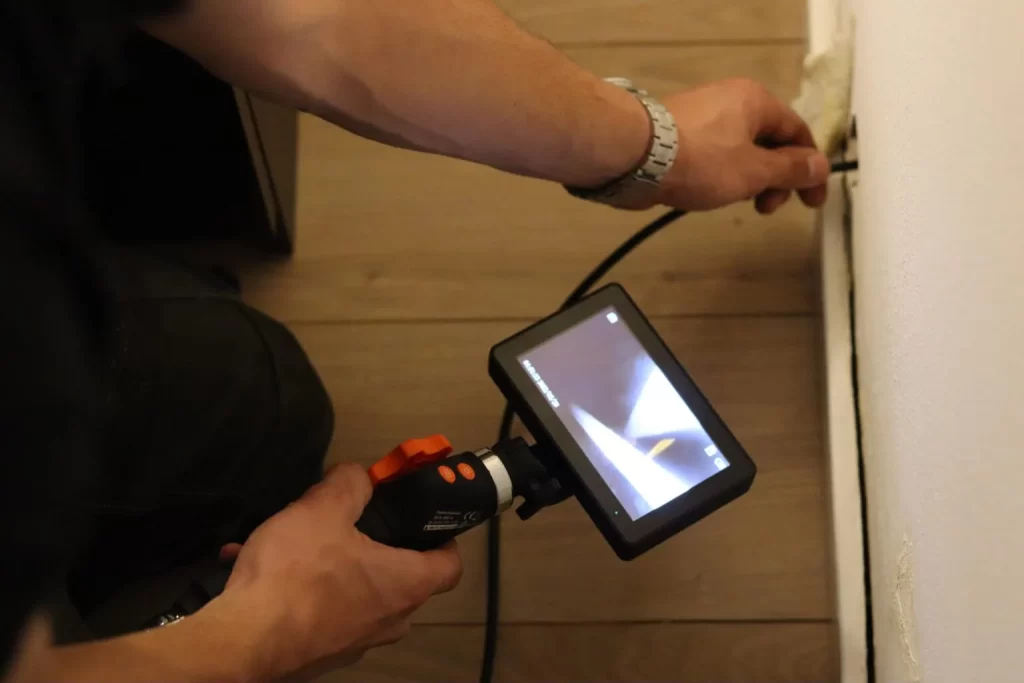 Met de endoscoop kunnen we visuele inspecties uitvoeren in muren, vloeren, plafonds en andere ontoegankelijke gebieden. Live beelden tonen zelfs de kleinste scheurtjes, corrosie of andere defecten, waardoor we nauwkeurig lekkages kunnen detecteren die anders onopgemerkt zouden blijven.